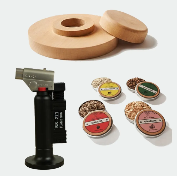 Transforme seus drinks com o Defumador de Bebidas em Madeira. Acompanha tampa, maçarico recarregável e 4 serragens aromáticas: macieira, abacateiro, laranjeira e goiabeira. Defume whisky, gin, rum, cafés e sobremesas em segundos, com aroma intenso e acabamento profissional. Itens Inclusos: Defumador de madeira com tampa Maçarico profissional recarregável 4 serragens aromáticas (macieira, abacateiro, laranjeira, goiabeira) Eleve o nível dos seus drinks com o Defumador de Bebidas em Madeira com Tampa, Maçarico Recarregável e 4 Tipos de Serragem Aromática. Ideal para uso profissional ou doméstico, proporcionando aroma, sabor e apresentação de alto padrão. Produzido artesanalmente em madeira de qualidade premium, o defumador possui tampa perfeita para manter a fumaça concentrada, garantindo uma defumação rápida, intensa e uniforme. O maçarico recarregável oferece praticidade e desempenho superior, com chama forte para defumar seu drink em segundos. Benefícios Acompanha 4 serragens aromáticas exclusivas Maçarico recarregável de alta performance Madeira premium com acabamento artesanal Tampa que concentra a fumaça para sabor intenso Ideal para whisky, gin, rum, tequila, cafés e sobremesas Perfeito para bares, bartenders e uso em casa.