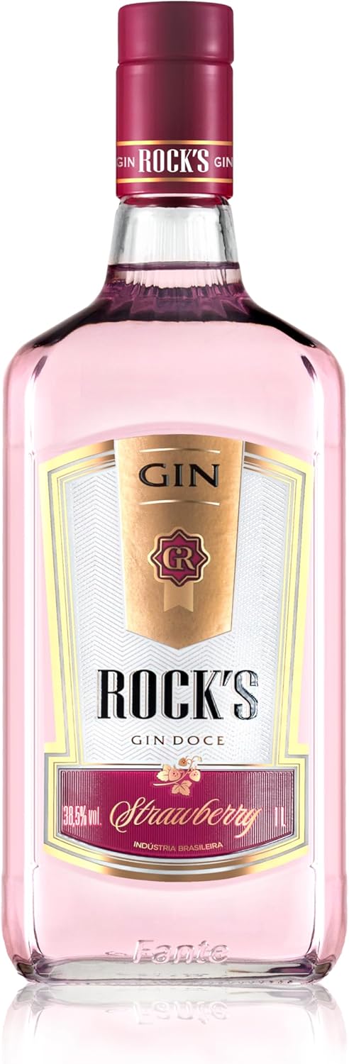 Gin Rock's Strawberry 1L. O Gin Rock's Strawberry é obtido pela destilação de um composto alcoólico, na presença de bagas de zimbro, carregando em seu fluxo os aromas e caracteristicas dessa matéria prima, que combinado com o toque levemente rosa, aroma e sabor do morango o torna um produto único. Quanto à maneira de beber, em geral, é servido no tradicional drink gin-tônica: água tônica, uma ou duas doses de gin, rodelas de limão e bastante gelo. O gin também pode compor diversos outros coquetéis, misturado com vermute ou licor de menta, por exemplo, sempre com bastante gelo.