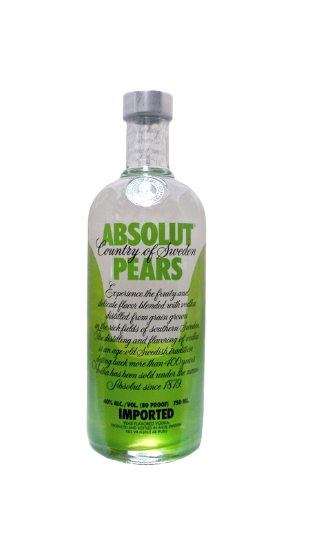 Introduzida em 2007, a Vodka Absolut Pears é uma novidade da família Absolut. É feita exclusivamente de ingredientes naturais, e diferentemente da maior parte de outras vodkas com sabor, esta não contém açúcar acrescentado. A Absolut Pears é fresca e delicada, com um gosto de pêras maduras e um sabor frutado que se demora.