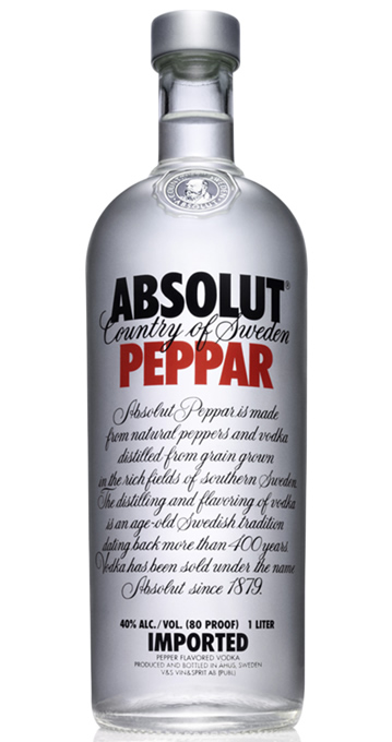 Absolut Peppar é uma vodka que reúne sabores complexos de pimentas verdes e chilli. Perfeita on the rocks, é também muito usada em cocktails como Bloody Mary. Seu bouquet de pimentas mexicanas do tipo Japaleno enriquece a textura desta bebida, muito suave, com uma sensação inicial de doçura. Persistente ao palato, é picante e arde durante a degustação, e esta sensação continua por algum tempo na língua.