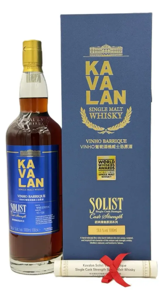 O Kavalan Solist Vinho Barrique é um aclamado whisky Single Malt de Taiwan, famoso por ter sido eleito o Melhor Single Malt do Mundo no World Whiskies Awards em 2015. Esta expressão é amadurecida em barris de carvalho americano que anteriormente continham vinhos tintos e brancos, processados através da técnica STR (shaved, toasted and re-charred — raspados, tostados e recarbonizados) para maximizar a extração de sabores da madeira.