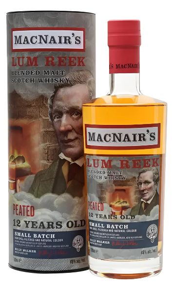 O MacNair’s 12 Anos Lum Reek é a porta de entrada para a linha de blended malts turfados da The GlenAllachie. Criado por Billy Walker, ele combina maltes de Islay (conhecidos pelo defumado medicinal) e Speyside (mais frutados e ricos), resultando em um whisky equilibrado e complexo.